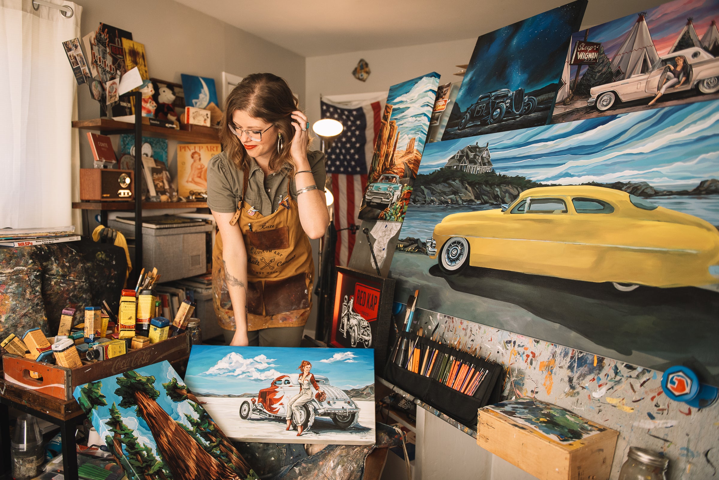Kate Cook creates each painting using her signature ärtemo-tiv® Art process, working with enamel paints originally designed for cars—transforming memories, machines, and moments into timeless works of art on canvas & metal.